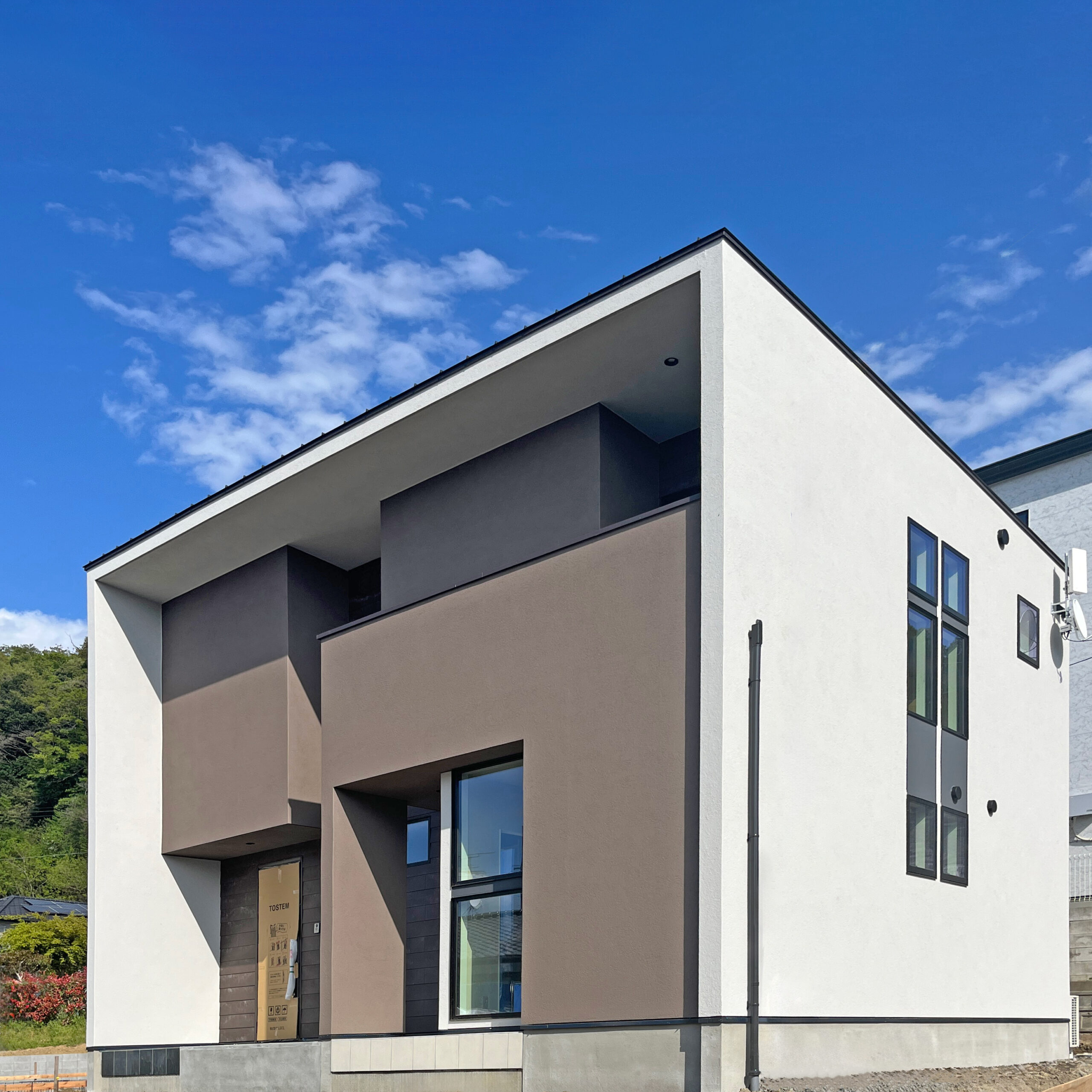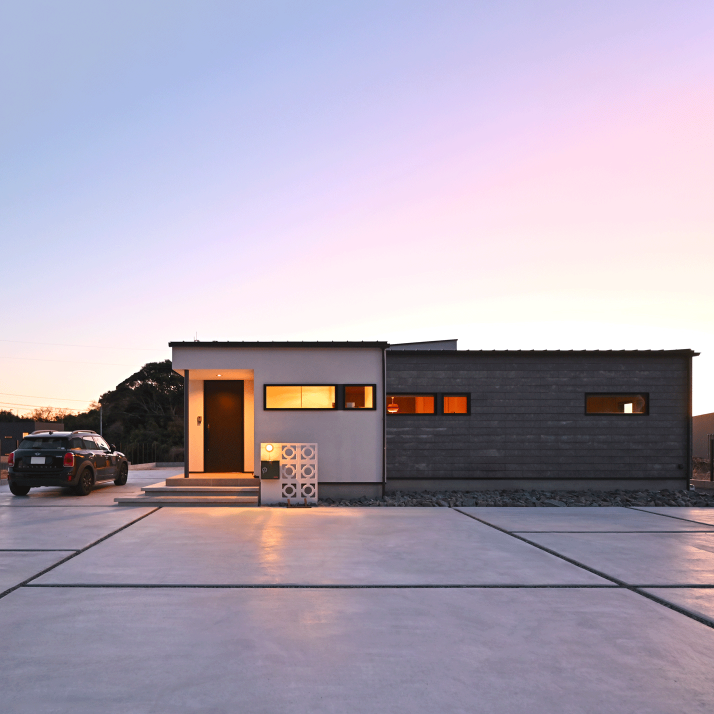 PROJECT 2024.02.06 360°中庭を囲む、ロの字型平屋の住まい -New project- 平中平窪で進行中の住まいでは、順調に工事が進み現在外壁と内装工事の真っただ中です。 3月末の完成へ向けて、だんだんとその全貌が見えてきました。 今回の住まいは、お施主様の強いご希望であった家の中心に中庭がある設計。 セメント調の「SOLIDO」ボードが横一面に延び広がるファサードを通り室内へ足を運ぶ。 中庭を囲むよう…