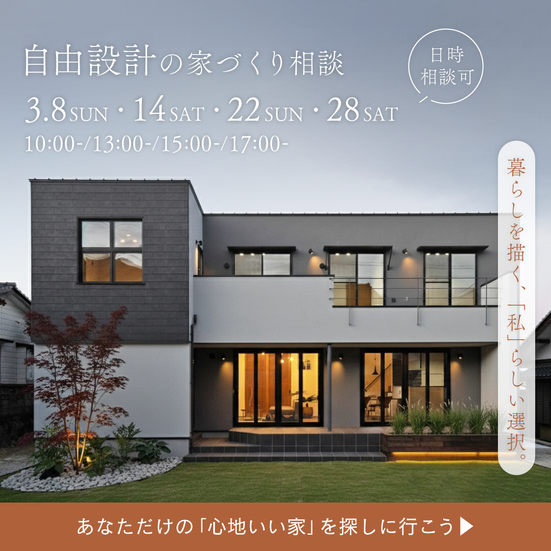 EVENT 2024.07.26 完成見学会開催のご案内 この度、いわき市薄磯にて10月1日(火)~10月20日(日)の期間、ご予約制の完成見学会を開催いたします! *ただいま見学会・建築相談のご予約を受付中です* また、10月5日(土)・10月19日(土)の2日間限定で、ご予約なしでご来場いただけるフリー見学会も開催されます! 50坪とスケールの大きい平…